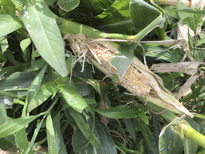 さて、第2菜園ではトウモロコシ苗がほとんど倒れて、苗が弱っていたので、食べれそうな感じの実は全て収穫して帰った。