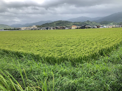 こちらは台風9号の後、何とか耐えていた菜園南側に広がる田んぼ。