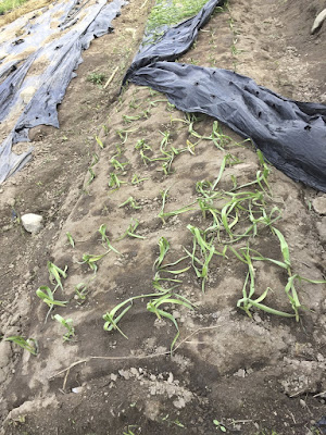 昨日、マルチが剥げてこんな感じだったニンニクの畝は、