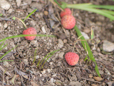 | 少し早めでも台風が来る前に収穫しておけばよかった。 今年のヤマボウシ、結構数が成っていて、収穫を期待していた。 |