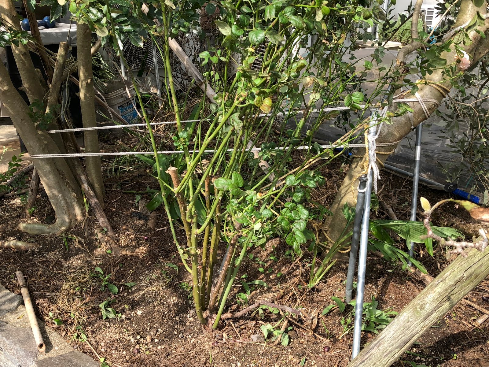 一方、第2菜園でロープ固定をしなかったところの数本は、きれいに倒れてしまった。
