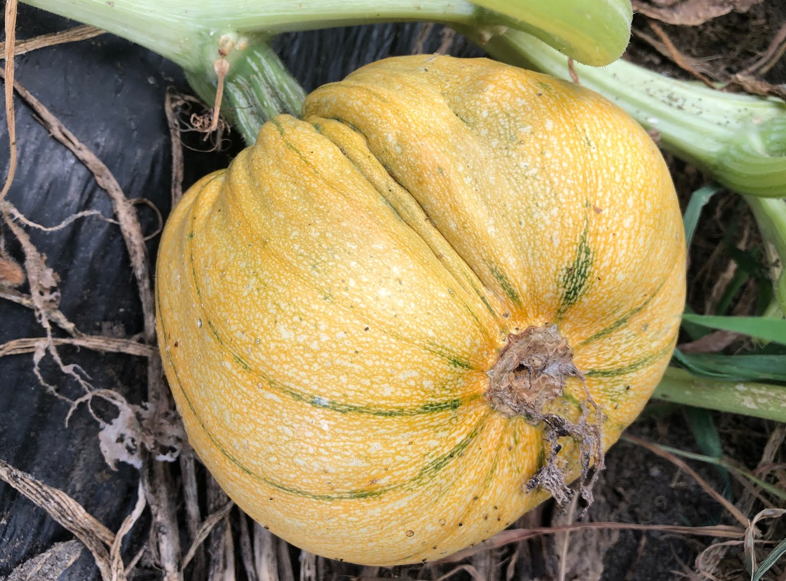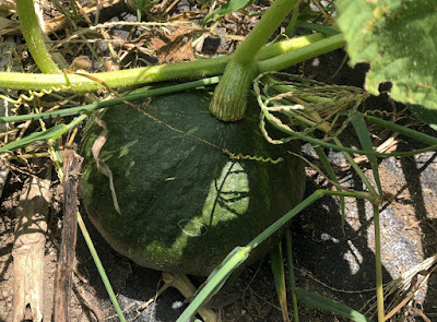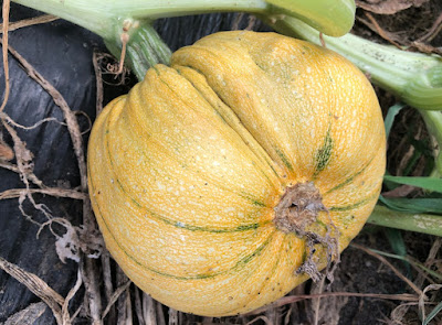 カボチャとして食べれるトランペット型ズッキーニは、まだたくさん収穫出来そうだが、今日は今年最後の収穫になりそうな通常のカボチャを収穫。