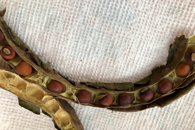 | この莢は数週間前に収穫して部屋の中で保管していた。 |