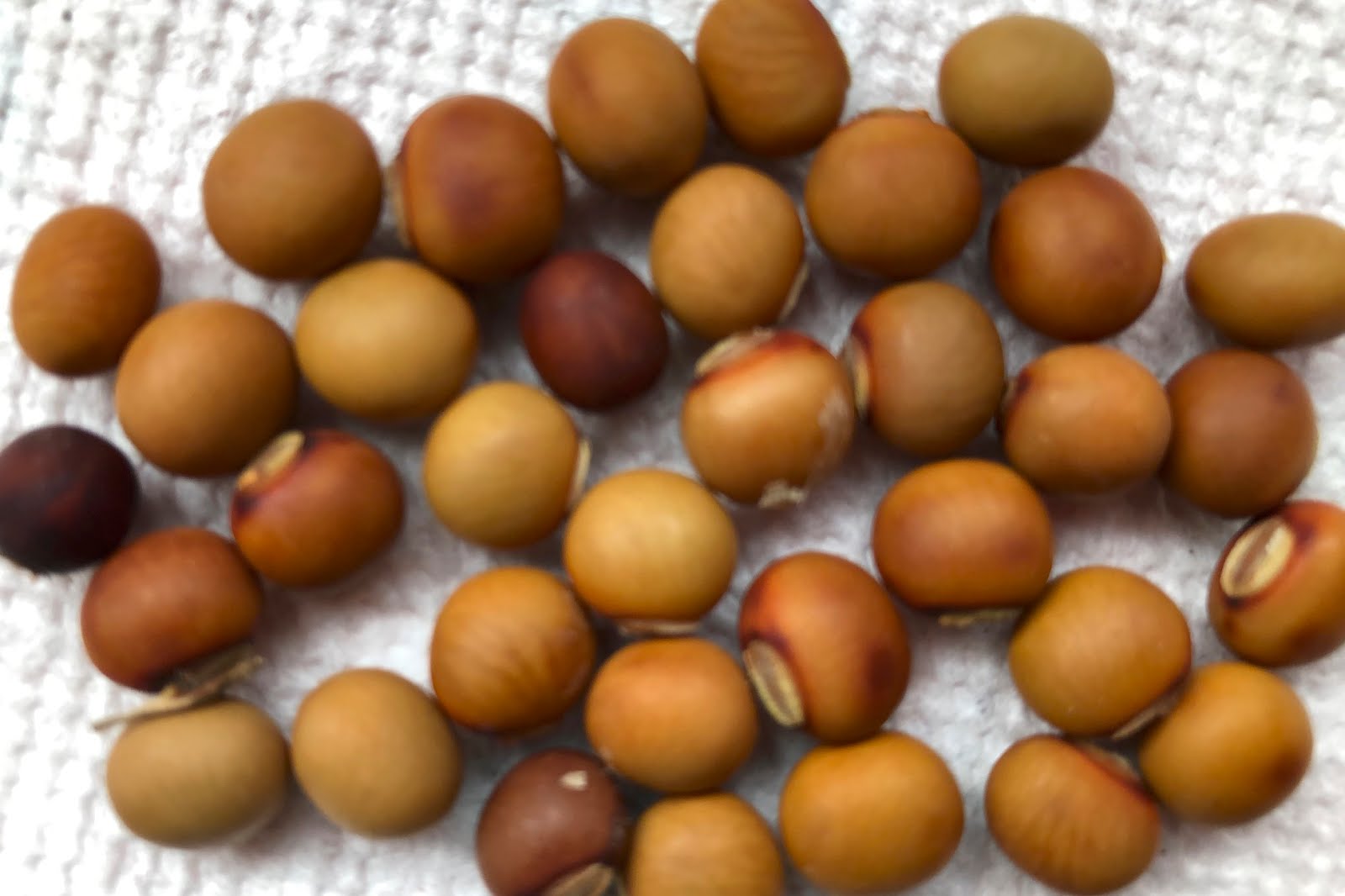 ただ、まだ緑色が残ったような莢からは、大きくても若干白っぽい豆が採れる。