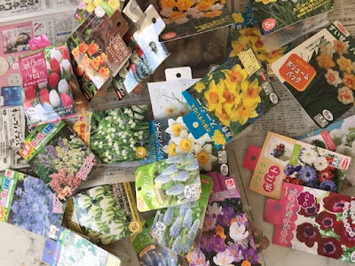 チューリップやユリ、水仙、アイリスなど大きめの球根に混じって、ムスカリやアネモネなどの小さな球根もたくさんあった。