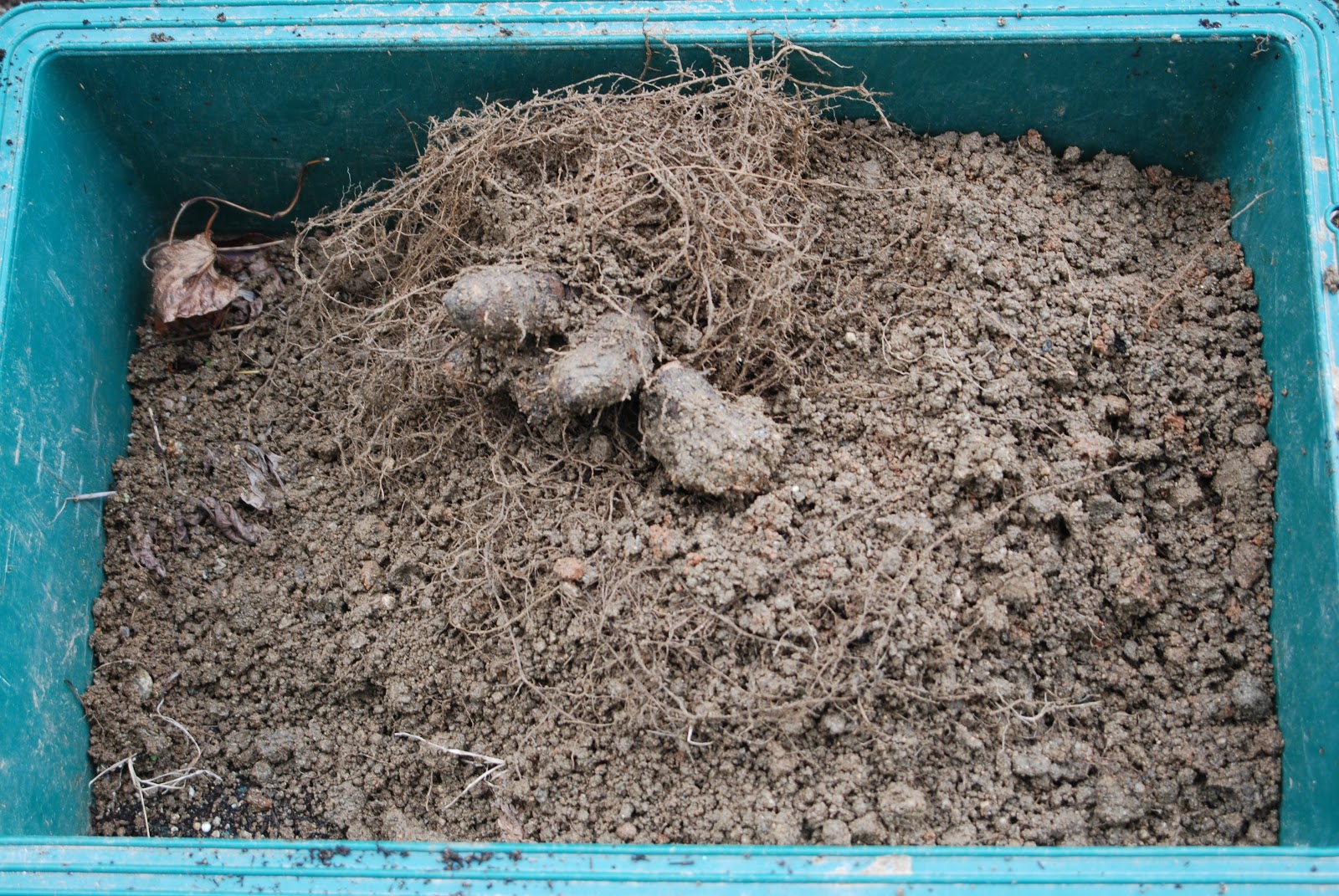 こちらも土はホクホク。根に絡み付いた土はすぐ外れる。