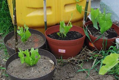 先日報告したアクアリフトを入れたツクネ芋(右から2番目,6月6日)
