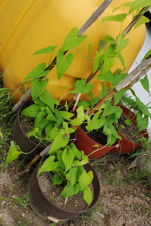 下の写真をよく見るとわかるが、アクアリフトの側の支柱から牛糞堆肥の支柱に蔓が移動したのだ。