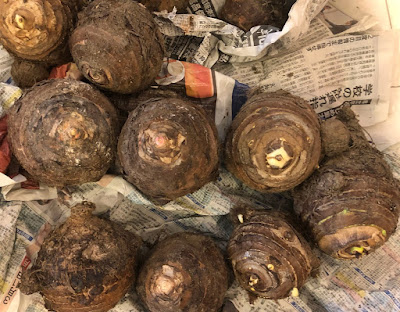 子芋はまだかなりが土の中に眠っているので、今年はまだしばらく自前の里芋を食べれそうで、嬉しい限りだ。