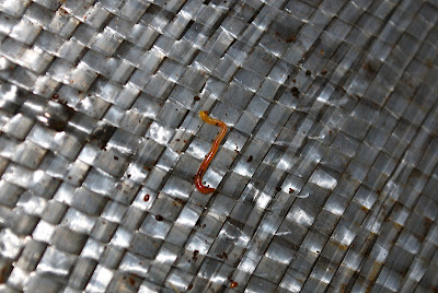置きっぱなしの堆肥袋だが、よく見ると堆肥袋の外側にみみず君がいる。