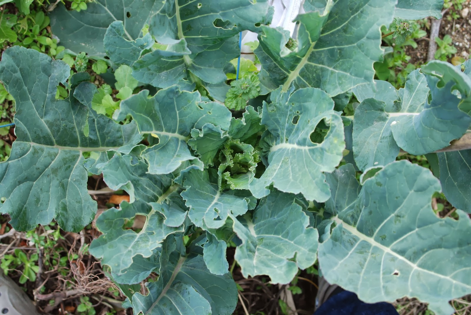 植えて間もなく、苗はさらにアオムシ被害で悲惨な状態になっていた。