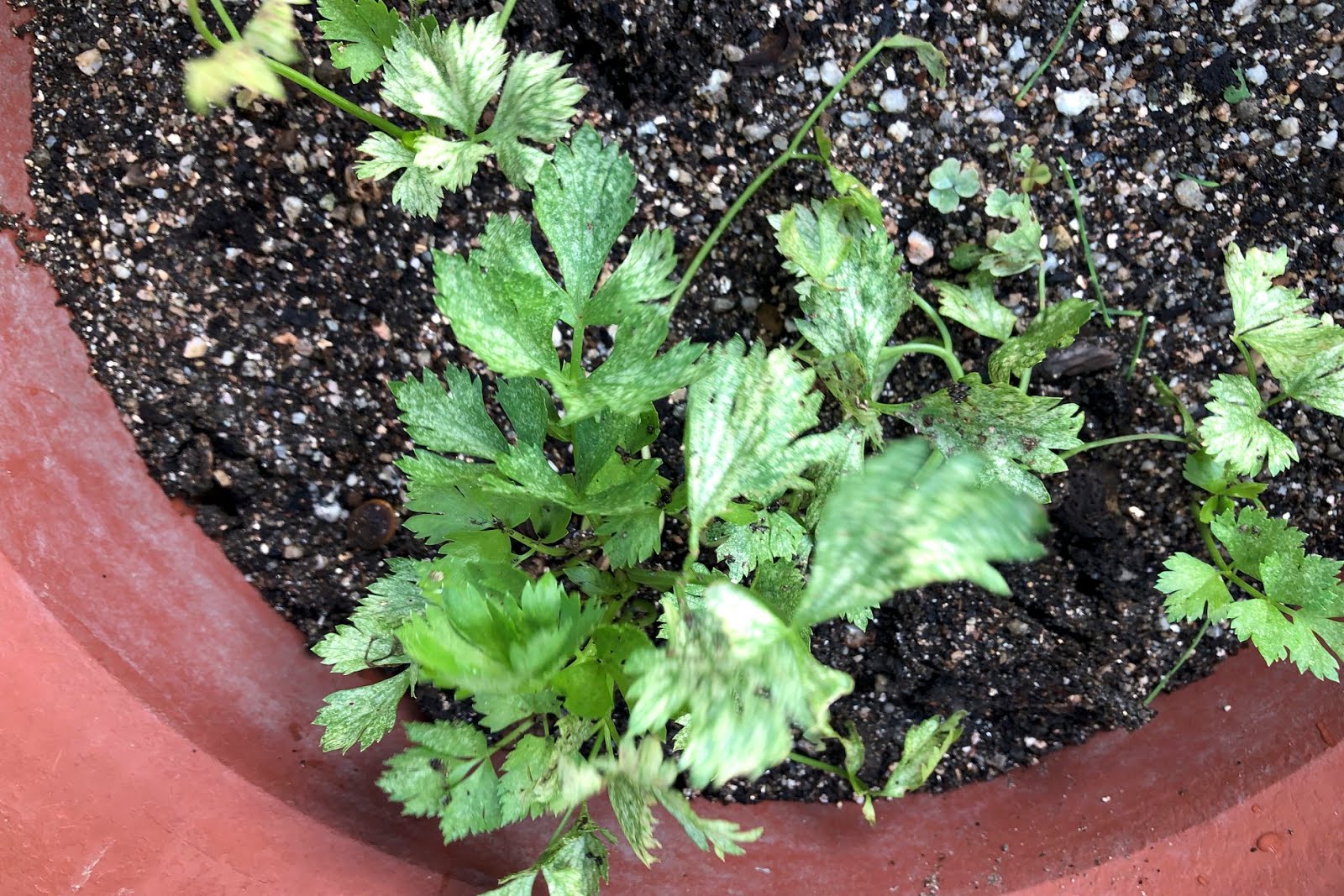 セロリは暑さに弱い野菜なので、やはり、この時期半日陰が育つ環境としては圧倒的に良いようだ。