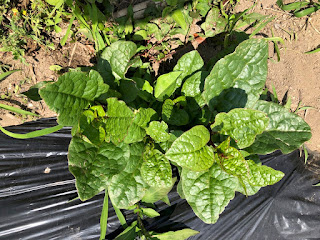 菜園に、まだあちこちに残っているツルムラサキの自然発生苗は雑草扱いになるので、これからしばらくは収穫しながら抜いていくことになる。