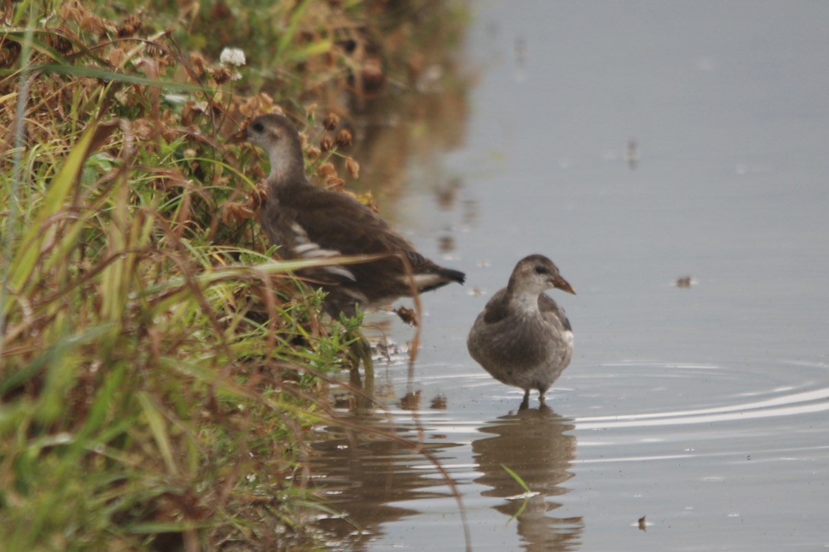 ただ、まだ田んぼの真ん中に長い時間居るのは不安なようで、若鳥たちは川と田んぼの間にある土手にすぐ上がろうとする。