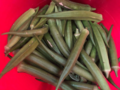 | 恐らく我が家でのオクラの一日での収穫量としてはこれまでで最高。 丸いオクラは長くても比較的柔らかくて食べれそうなものが多かった。 |