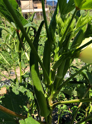 | 収穫には遅すぎると思われるオクラもそのまま収穫して帰った。 |