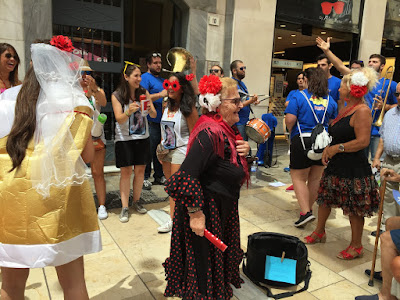 祭りの最中は、物凄い人だかりによるゴミと、祭りで飲まれるCARTOJALという甘いワインが溢れて、道はベタベタになっているのだが、夕方7時丁度に町中の祭りは、きちんと終わり、そのあと場所を郊外に移し、続きを楽しむらしい。
