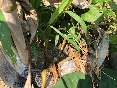 オクラとエンツァイも数カ所で元気に育っているので収穫したかったのだが、今日の畑仕事はほどほどに切り上げて、明日にやることにした。