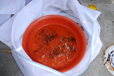 それに対してどんぶり型のミミズ小屋は、比較的雨に濡れにくい場所に置いたつもりだったが、雨の日には下の受け皿は雨水に少しミミズのおしっこが混ざった透明に近い色のプールが出来ていた。何匹かみみず君も泳いでいた。