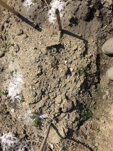 で、こちらが、2株分の親芋と小芋を埋めていた場所。