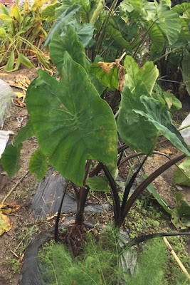 里芋はこれまで、第2菜園にある小さな親芋を順行植えした株を、10月の初めから食べる分だけ掘り起こしてきた。