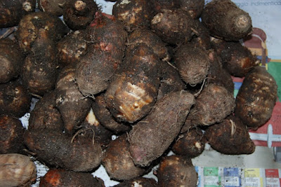 | こちらは、『元々あった里芋』の親芋 こうして、親芋だけを見ると『土垂』と区別が難しい。 |