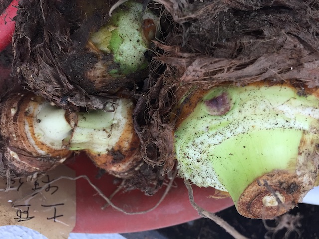 | こちらは、見ただけで区別がつく『赤芽大吉』の親芋。 |