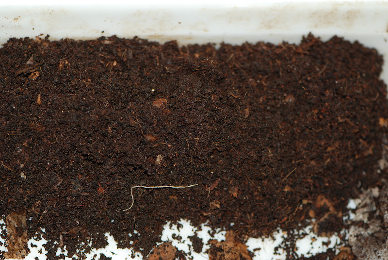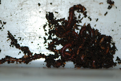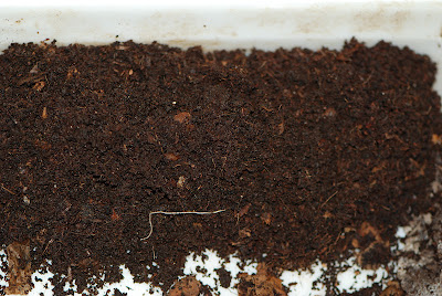 | 大人みみずを8匹投入していたが、堆肥の中には8匹の大人みみずと2匹の子供みみずがいた。 |