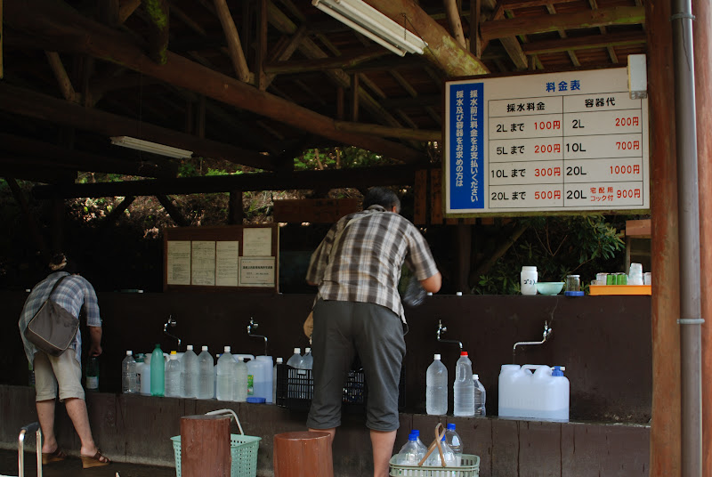 | この水は血圧にも糖にも効く。飲み始めて病院にいかなくて済むようになったと、水を汲みながらうれしそうに話していたおじさん。軽トラの荷台いっぱいにペットボトルが並べてあった。 |