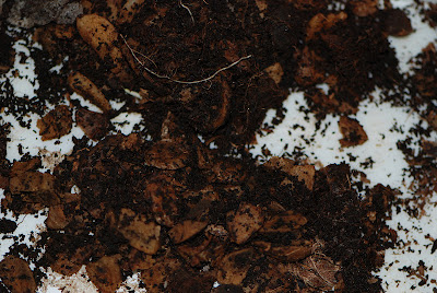 下の写真は堆肥の状態だが、そこに卵は見つからなかった。赤ちゃんもいない。それに今妊娠しているみみず君も居ないとなると、やはり子供みみずが2匹居ることが納得出来ないのだ。
