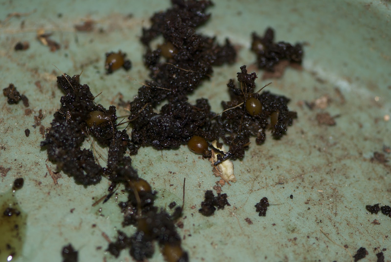 一方、前回観察小屋の中に認められた小バエ(B−29)のさなぎが、今回も10個程見つかった。もちろん見つけたものは観察小屋から外した。