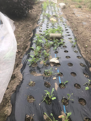 先日、種の追加蒔きを行ったのだが、この畝では今もマルチの下にはコオロギがたくさん隠れている。