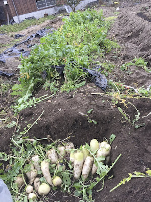 この時期に収穫する大根は土の中に保存すると3月いっぱい食べれることが分かっていたので、今回も収穫した大根の2/3ほどを土の中に保存することにした。