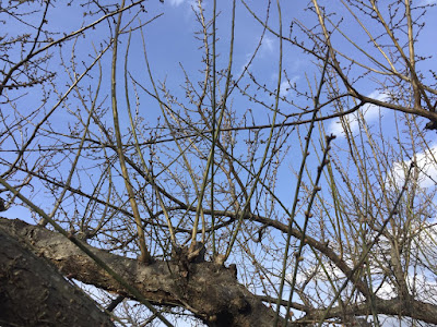 | 重なり合った枝のどちらかは、花芽がたくさん付いていても切り落とした。 |