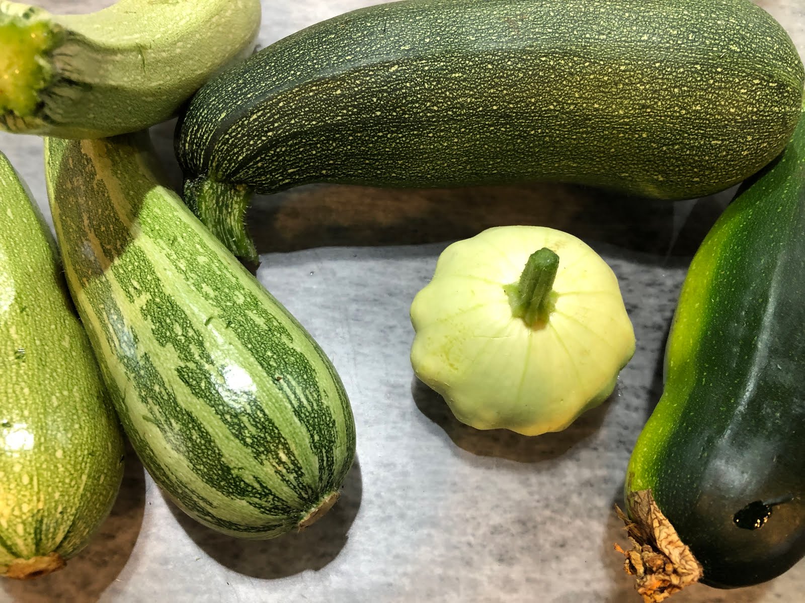 | 他のズッキーニたちに交じって、小さいがUFO型ズッキーニの初収穫だ。 |