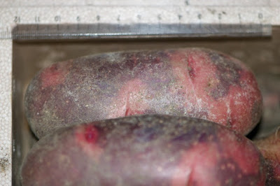 | これらの芋も天気がいい時に陰干しした方が良さそうだ。 今のところ虫に食べられたデストロイヤーはほとんどない。 これから芋は大きくなってくるが、虫に食われる芋も増えてくるはずだ。 |