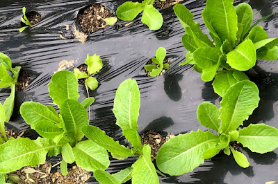 ロメインレタスの第1陣の畝では、収穫を始めるまであと1週間といった感じに苗は育っているが。。