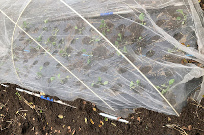 そして、それらをおこなう畝の多くは、虫被害に遭いにくいように1.5mほどの鉄パイプを防虫ネットの両端に置いた2m弱の小さな畝だ。