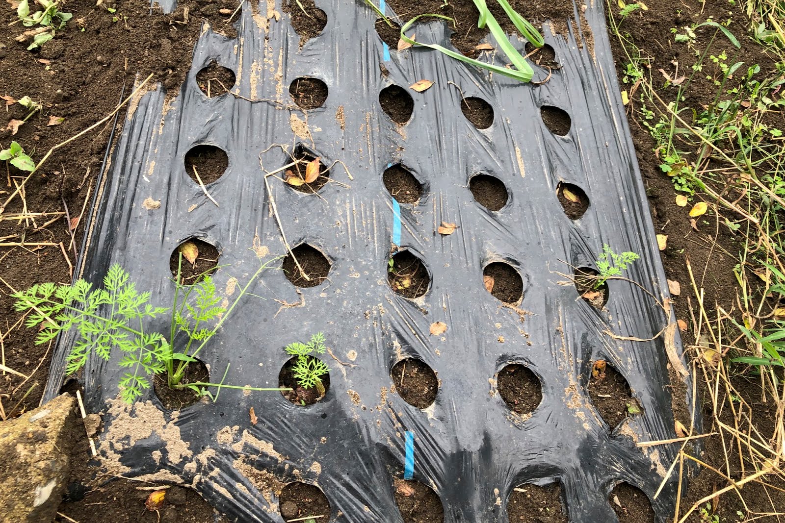 ニンジンは、足踏み法をおこなっている小さな畝で順調に芽出しできているので、新たな畝に追加種まきをした。