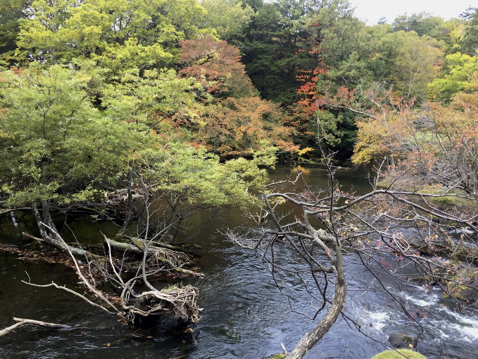 次の宿に行く途中は、戦場ヶ原の黄色く色づいた木々を通り過ぎ、湯ノ湖近くに車を止めて、少し散策した。