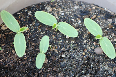 ところで、先日種蒔きした白キュウリが本葉を出し始めたので畝に移植した。