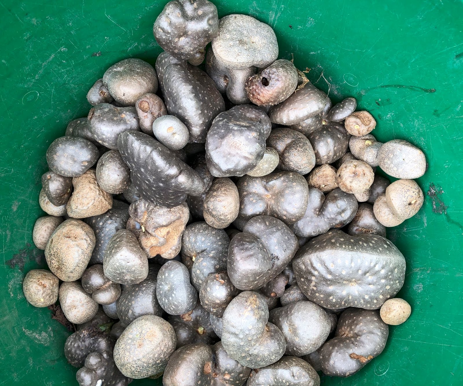 この第1菜園には5〜10cmの種芋を7個植えていたが、その収穫量は全部で11kgあった。
