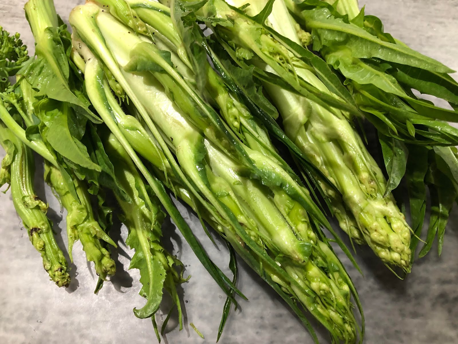 | プンタレッレは収穫した後の茎は大きな空洞が出来ている。 ただ、周囲から小さな花芽も出てきているのだ。 |