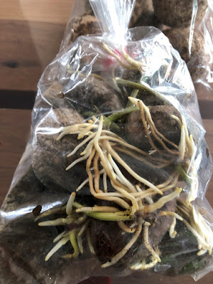 | もう、芽も根も出ている種芋なので植え付けても失敗はなさそうだ。 |