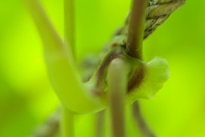 | これが宇宙芋の葉の付け根にでき始めたムカゴの赤ちゃん。 |
