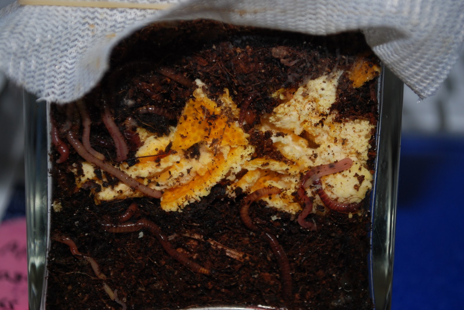 安心!柑橘類(1)実験 野菜作り X Facebook Pocket LINE 2011.11.09 4時間経ってみみず君たち動けなくなっとものなし、顔色が悪く感じたミミズも姿が見えない。よかった!これであとはのんびり経過観察です。 [実験開始4時間後]みみず君上の方に移動したものが若干多く見受けられるものの皮の中をうごめくミミズもたくさんあり。どうやらこの環境で生き延びることには心配なさそうです。あとは温州みかんの皮を食べてくれるかどうかゆっくり見守っていきます。 ところで今日はプラコン2号チェック、堆肥は黒々と上等、バケツ半分、餌は固いサツマイモのみ残しているものあり、これは再投入。みみず君も元気であったがなぜか卵は少なかった。