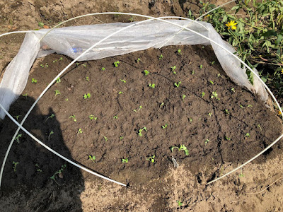 さて、9月の初め不完全な密閉の防虫ネットで育てた苗がことごとくコオロギにやられたが、その後完全に密閉して種まきをするやり方は概ねうまくいっている。