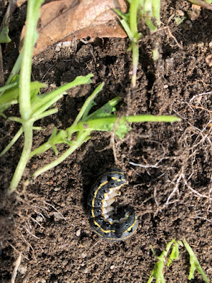 | 犯人は土の中にいたヨトウムシだったのだ。 苗の真下に潜んでいた。 こんなヨトウムシを4匹捕殺した。 |