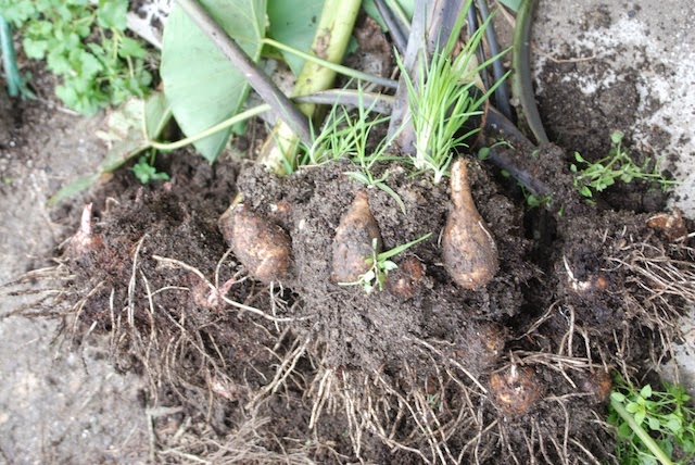 収穫した時の印象は上等.よく子芋が付いているし、その大きさも大きかった。