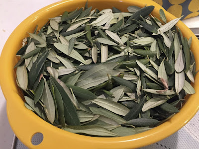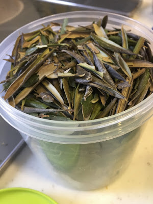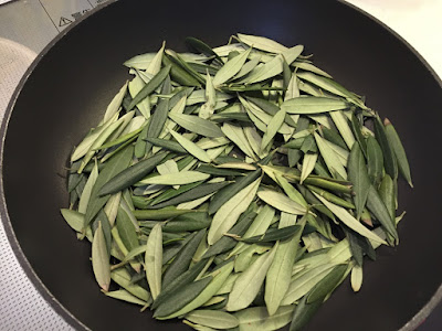 ところで、先日はオリーブの木を剪定したが、切り落とした枝から取った葉は洗った後、窓辺で乾いていた。